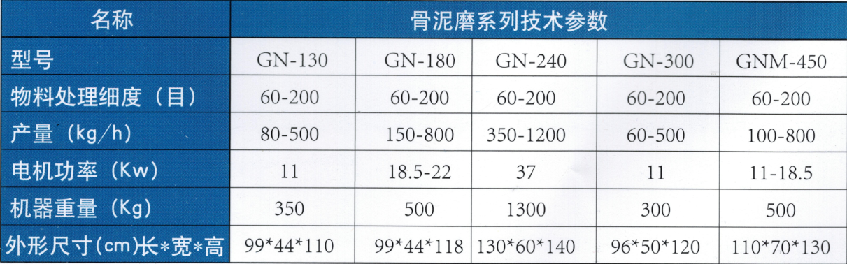 能加工禽骨:如雞骨架、鴨骨架;畜骨:如豬骨、牛羊骨;豬皮、雞皮及各種魚(yú)、肉類等。骨泥加工工藝流程:粗碎-〉粗磨一〉精磨->鮮骨泥廣泛應(yīng)用于各種香腸、火腿、午餐肉、丸子、咸味香精、骨髓浸膏、寵物食品、速凍食品、餐飲配料、骨湯、軟骨素、骨膠、骨粉、高鈣食品、保健品、生物制藥等行業(yè)。